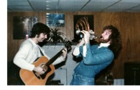 A shot of myself (right) and Paul Kriedeman in background jamming away at a church function. Paul’s bass playing blew me away as well as his knowledge of Christian rock. He introduced me to a lot of great music I didn’t know existed at the time. (Paul, I still remember the great trip to Freeville, NY we made, meeting Phil Keaggy and having a general riot of a time!