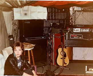 Heather in Steve “Gamma” Gora’s basement in Blasdell NY. The monster synthesizer in the background was made by Moog expressly for Keith Emerson of Emerson, Lake & Palmer, even bearing his name on it. .