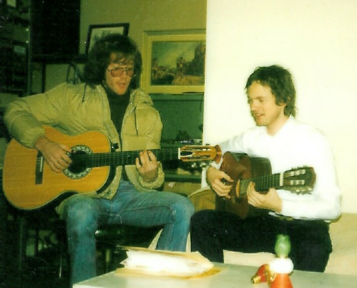 Here’s me with “Olivia”, my classical guitar (named after the beautiful and talented Aussie singer Olivia Newton John), with James Sunquist watching on in amazement as I use smoke and mirrors to trick him into thinking I was playing something really cool.